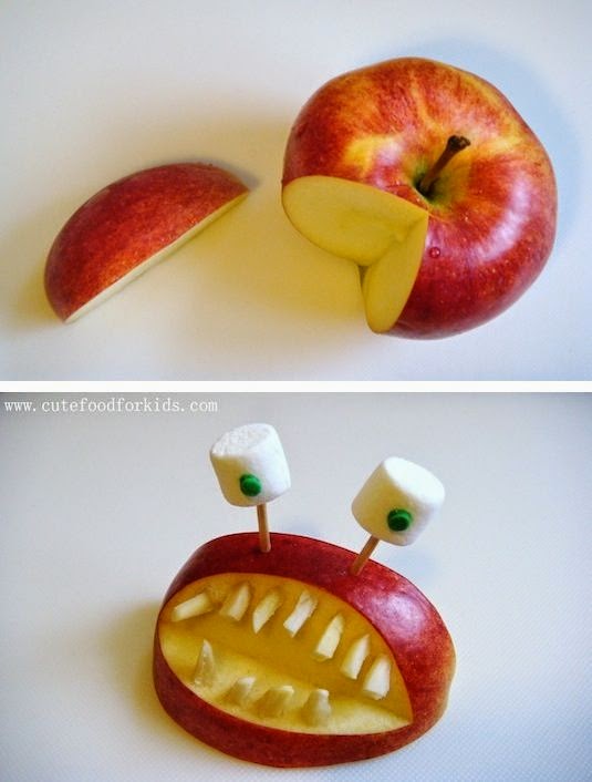 http://shinekidscrafts.blogspot.hk/2013/10/halloween-snack-for-kids-apples-and.html